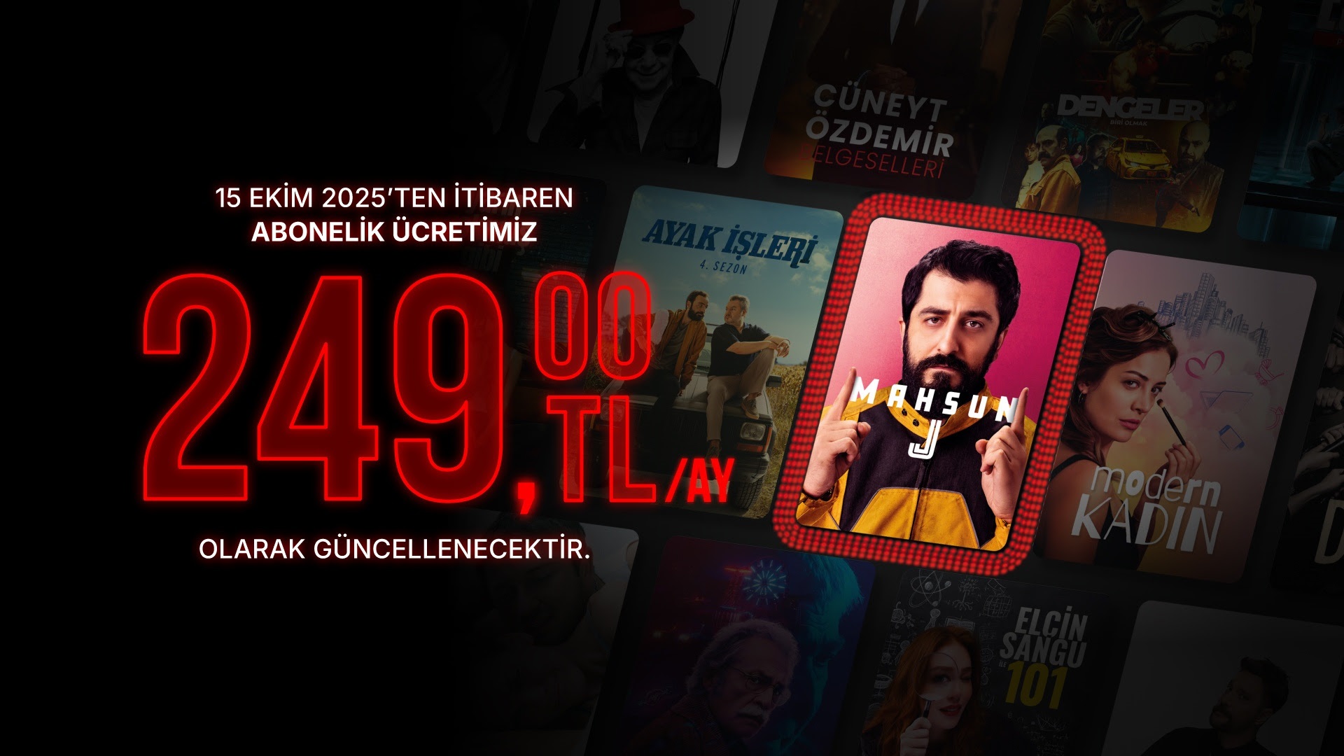 Geçtiğimiz hafta Mahsun J dizisinin 2. sezon ikinci kısmını izleyiciyle buluşturmaya başlayan GAİN ise aylık 149 TL olan abonelik ücretini 15 Ekim'den itibaren 249 TL'ye yükseltti.